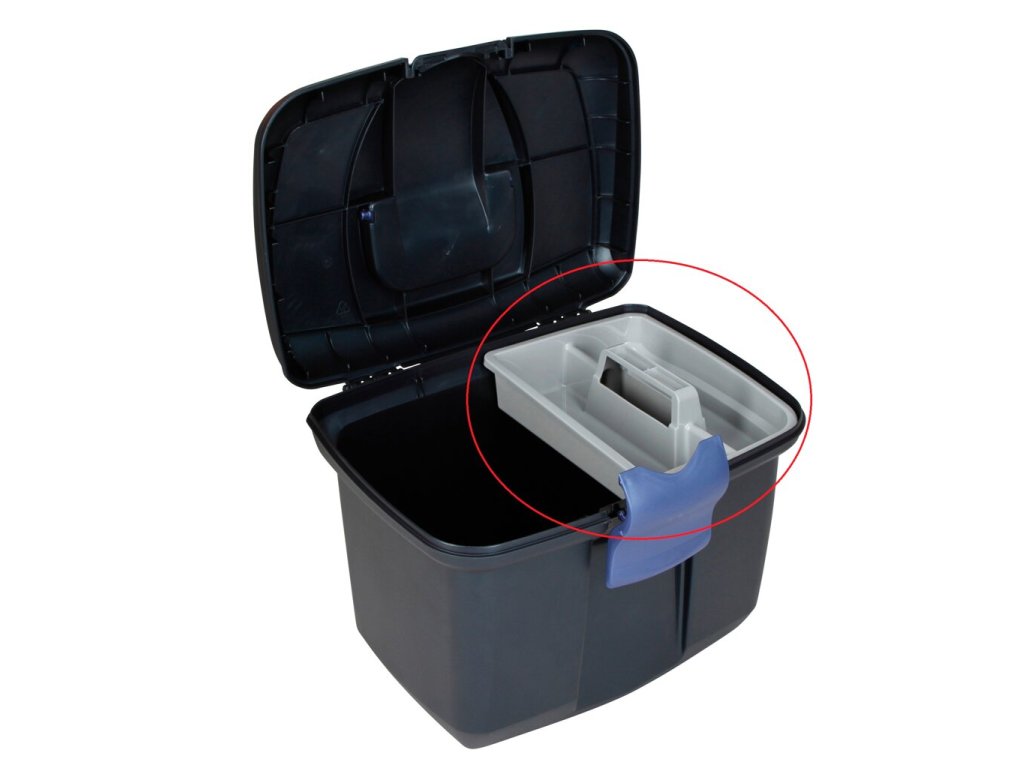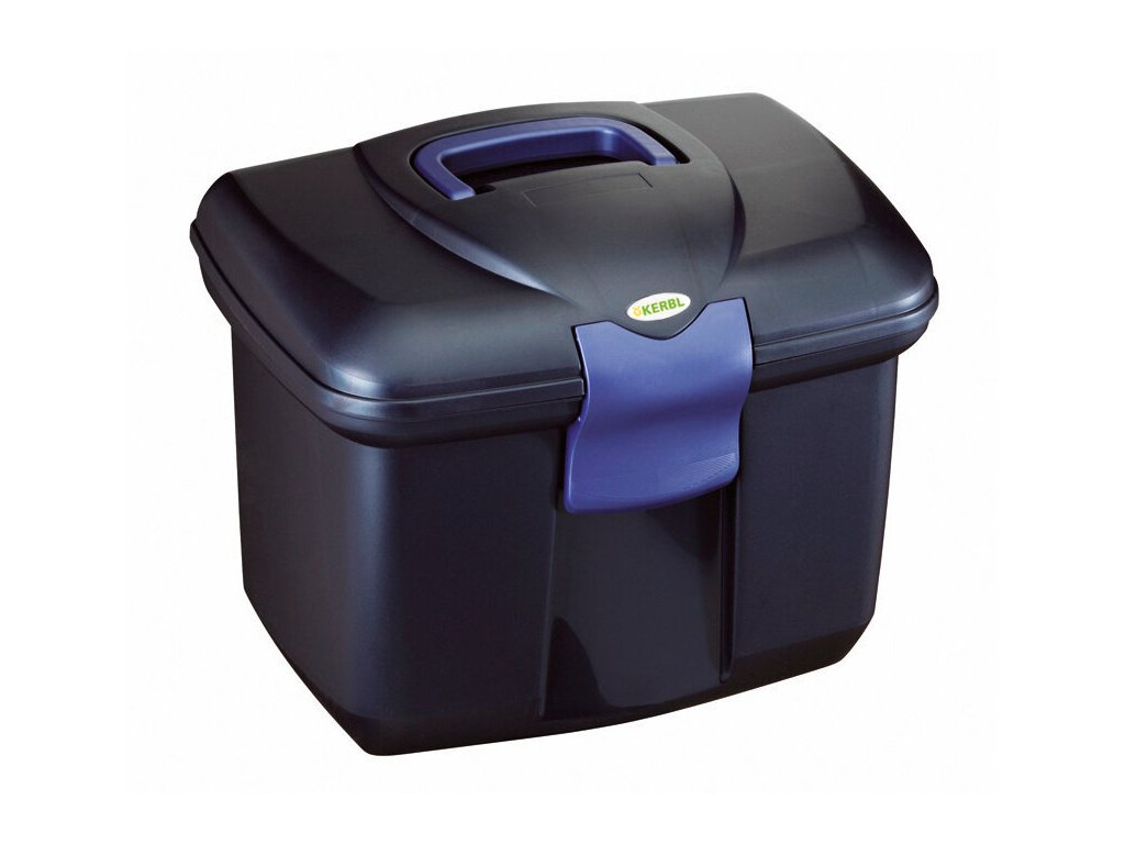 Díky optimálním rozměrům (405 x 320 x 305 mm) nabízí box Roma dostatek místa i pro větší kartáče a hřebelce. Tmavě modrý design je nadčasový a skvěle zapadne do každé sedlovny.