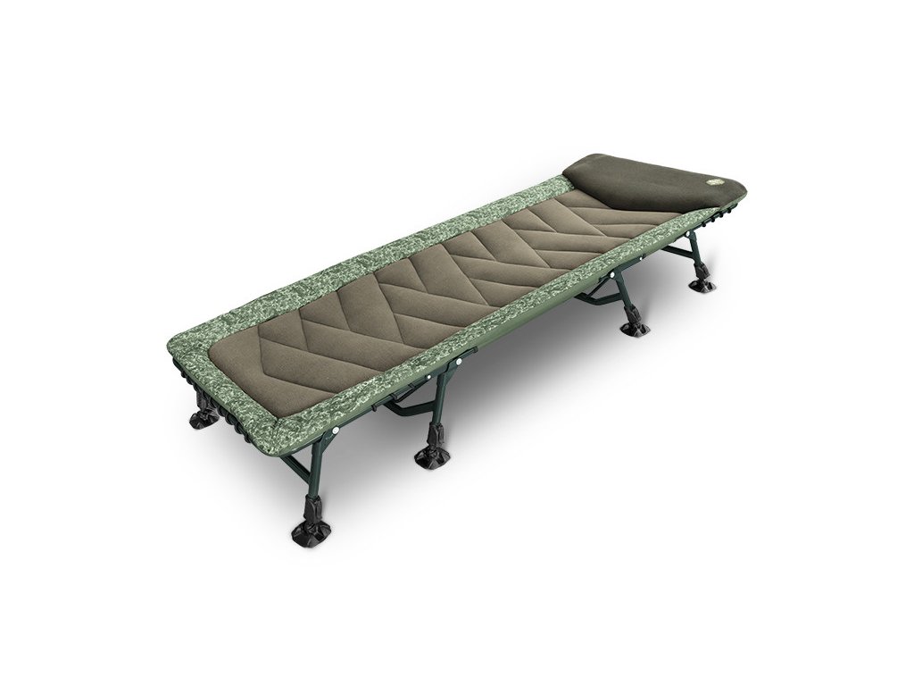 Luxusní matrace pro maximální komfort: Na robustní konstrukci je osazena silně polstrovaná matrace s efektním prošíváním, které dodává tomuto lehátku punc originality a luxusu. Matrace je na povrchu potažena měkkým fleecem, čímž je velmi příjemná na dotek a výborně zahřeje během chladných dnů. Kromě toho je matrace po obvodu opatřena odolnou 600D látkou v jedinečném C2G designu, který dokonale splyne s přírodou. Pro maximální pohodlí je ve vrchní hlavové části extra polstrovaný fleecový panel tmavě zelené barvy, který poskytuje optimální podporu. Ve středové části je matrace ze spodu dodatečně vyztužená a její tuhost lze nastavovat pomocí pevného gumového provazu, což umožňuje individuální přizpůsobení.