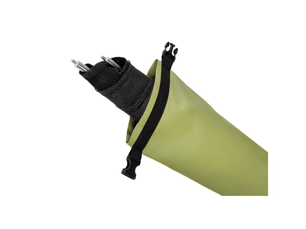 Materiál pouzdra je navíc velmi odolný vůči poškození a také snadno omyvatelný, což zaručuje dlouhou životnost a snadnou údržbu. Transport pouzdra usnadňuje praktická černá rukojeť našitá na boku. Uzavírání je řešeno pomocí srolování vrchní části a následného zapnutí pomocí přezky, což vytváří hermetické těsnění a zajišťuje maximální vodotěsnost.