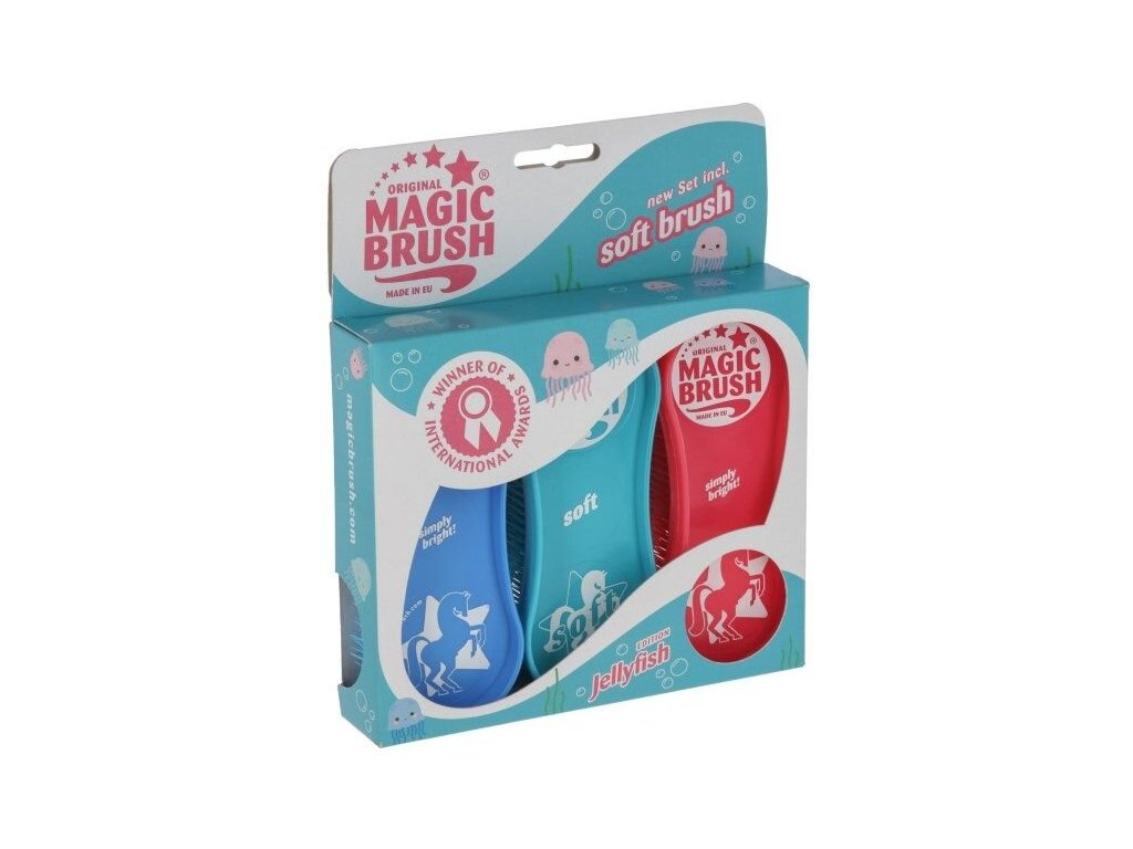 Potřebujete sadu, která je nejen extrémně funkční, ale i atraktivní? Sada kartáčů MagicBrush JellyFish kombinuje speciální účinnost kartáčů MagicBrush s veselými barvami duhy a přináší extra jemnost díky jednomu Soft kartáči.