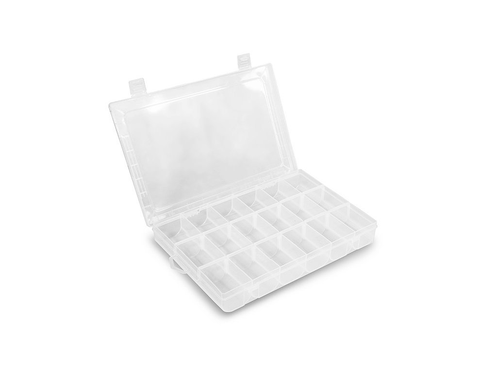 Ve vrchní části se nachází velká přihrádka s přepážkou na suchý zip, kterou si můžete přesouvat po celé délce a tím modulovat prostor podle svých aktuálních potřeb. Pod touto sekcí se nachází největší komora, ke které se dostanete z přední části tašky. Zde naleznete 2 praktické plastové boxy na různé rybářské příslušenství, jako jsou drobné komponenty, háčky, nebo olova.